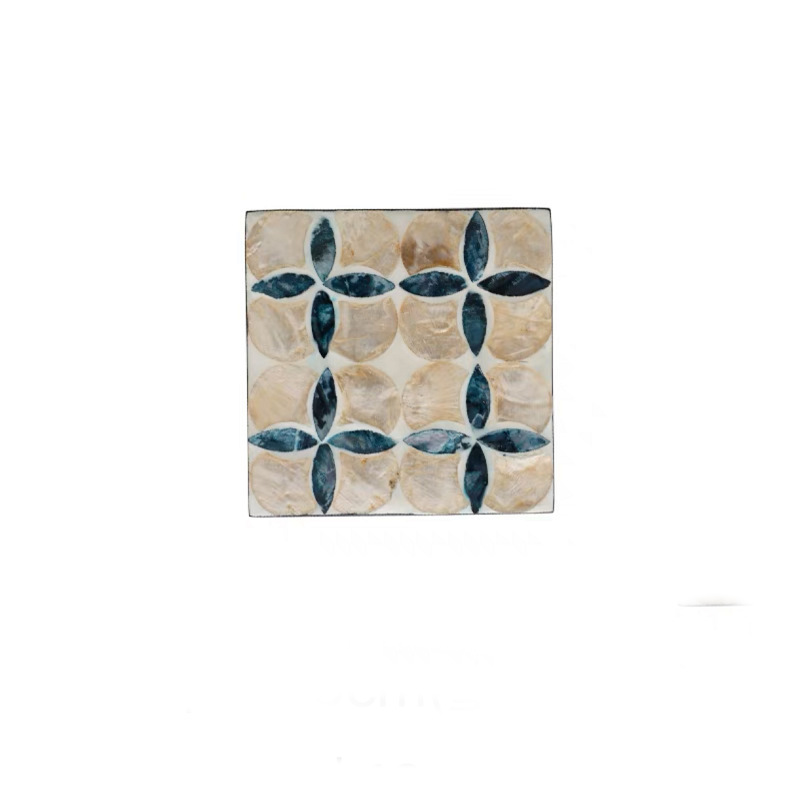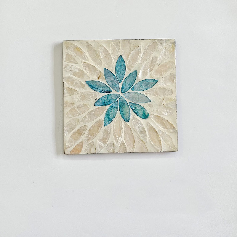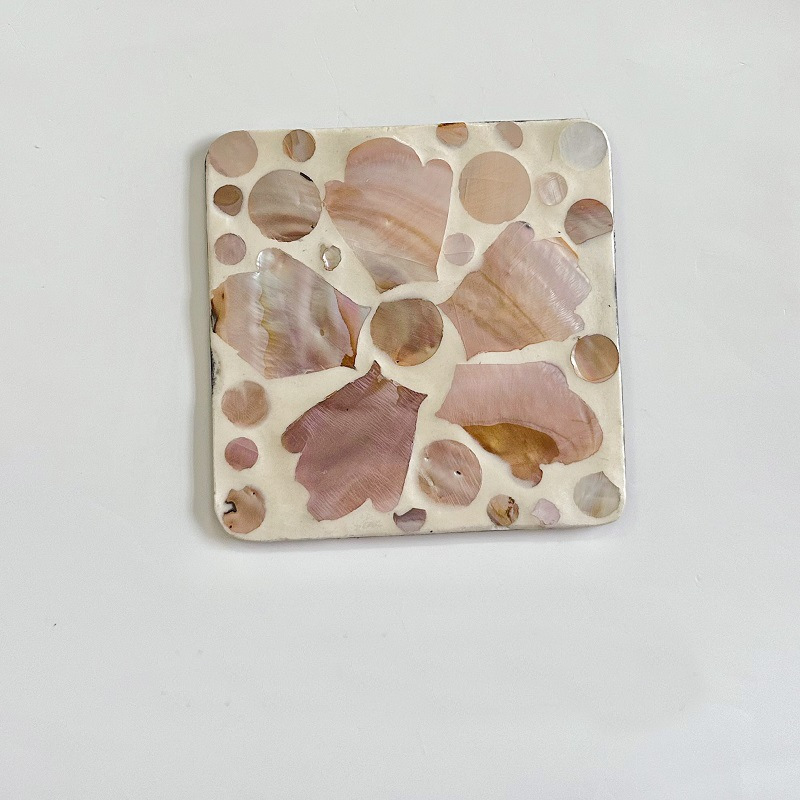 Handmade Square Painted Shell Drink Coasters Set